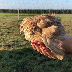 Codorniz com o gene vermelho, utilizável em linha mãe para sexuar os pintos com 1 dia, economizando assim os custos de criação.